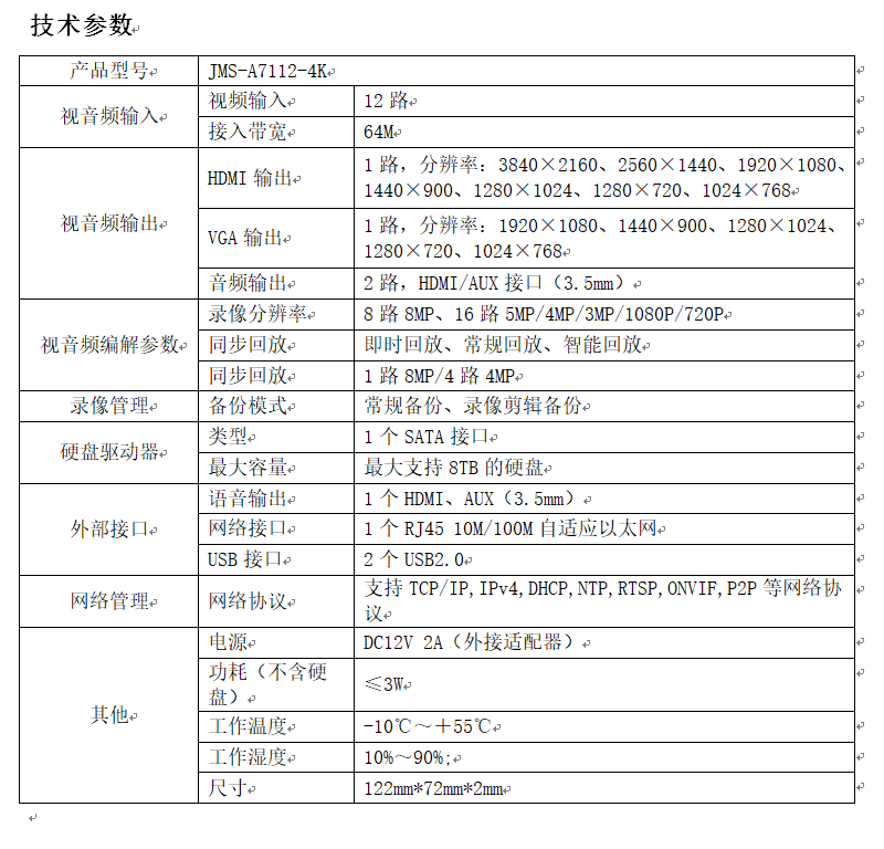 ·最大支持8MP像素高清网络视频的预览、存储与回放;